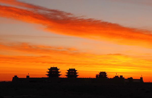天色明凈蔚藍(lán),群山蒼翠綿延,尕海湖的靛青湖水與碧綠湖邊草,晨間血色日暉與雄關(guān)逆光剪影,鏡頭里的甘肅清透中浸染著一股遒勁。