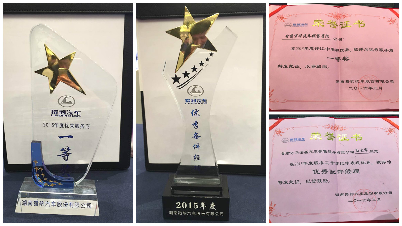 3月30日,湖南獵豹汽車股份有限公司在長沙市韋爾斯利大酒店舉辦了“獵豹汽車2016年南部區(qū)域服務(wù)工作年會”,總結(jié)、布局2016年獵豹汽車的銷售服務(wù)工作,解讀2016年商務(wù)政策,介紹即將上市的獵豹新品。甘肅萬華金盛汽車銷售服務(wù)有限公司及備件部經(jīng)理孫大軍作為優(yōu)秀服務(wù)商和優(yōu)秀個人受到了大會的特別邀請。