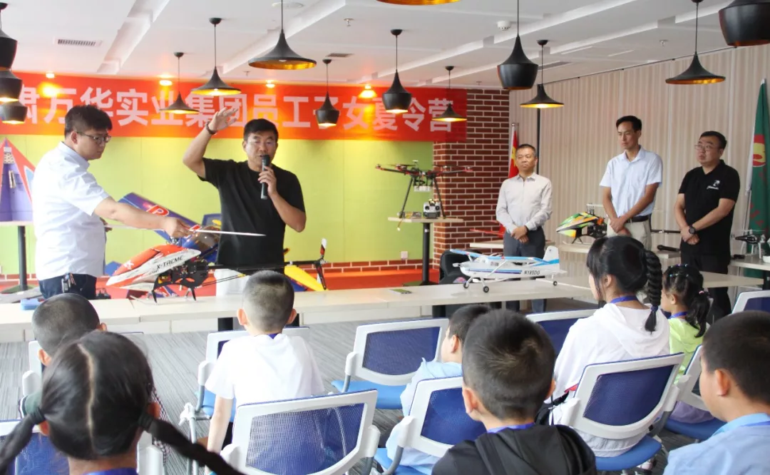 牛新民首先向在場的小朋友們問好。他說:“非常開心看到這么多小朋友在炎熱的夏季來到萬華大家庭參加夏令營,看到你們也讓我想到我年幼的時光,也回想起我是如何懷著童年的憧憬一步步成長,不斷磨練進取,擔(dān)起社會的責(zé)任。希望大家今天能把航空基本知識帶回家,小朋友之間彼此認識、增加了解,在今后的學(xué)習(xí)和生活中留下一筆美好的回憶,也希望小朋友們能夠珍惜來之不易的夏令營的美好時光,學(xué)到你們喜歡的知識和有用的本領(lǐng)!