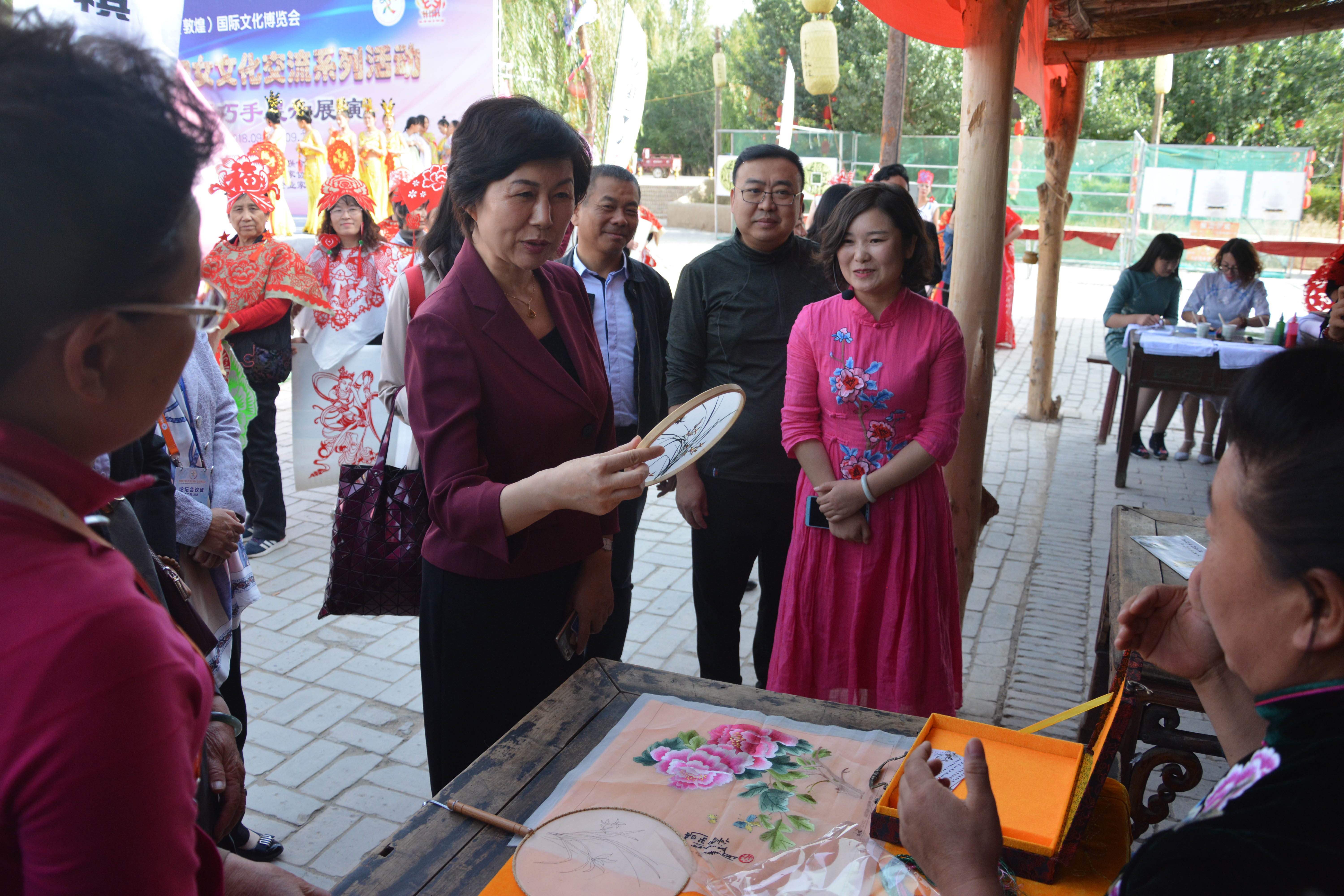 9月26日下午4時,甘肅省婦聯(lián)黨組書記、主席周麗寧一行來到月牙泉小鎮(zhèn),視察景區(qū)中心街正在舉行的“首屆婦女文化交流系列活動——隴原巧手展示展演”,認真觀摩了來自全國各地手工編織界的業(yè)內(nèi)人士及“巧手們”的指尖技藝。甘肅萬華實業(yè)集團總經(jīng)理、敦煌千年古城文化發(fā)展有限公司董事長牛新偉,甘肅萬華實業(yè)集團副總經(jīng)理宿曉中陪同考察。