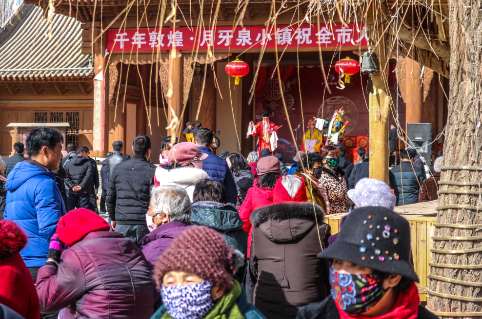 2月19日,月牙泉小鎮(zhèn)張燈結(jié)彩,古街巷道里人頭攢動。景區(qū)內(nèi)精彩紅火的社火表演、韻味醇厚的戲曲展演、趣味連連的燈謎競猜、流光溢彩的花燈秀等眾多元宵民俗活動和多彩的民間藝術(shù),讓廣大游客樂享元宵節(jié)“文化盛宴”。