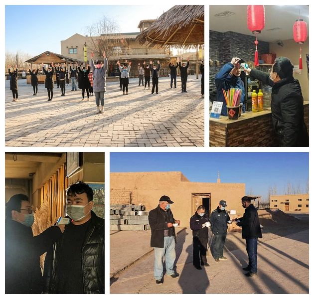 一手抓疫情防控,一手抓復(fù)工生產(chǎn)。千年敦煌·月牙泉小鎮(zhèn)民俗文化旅游景區(qū)自3月2日復(fù)工以來,認真落實景區(qū)辦公區(qū)域、公共區(qū)域、景區(qū)道路等區(qū)域的消殺工作。3月3日9時,敦煌千年古城文化發(fā)展有限公司派發(fā)了董事長牛新偉為一線員工準備的N95口罩。疫情期間,為增強員工免疫力,每天清晨伴隨著舒緩的音樂,敦煌公司組織員工在景區(qū)中心街間隔1米,練習八段錦。