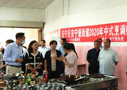 6月10日上午,安寧區(qū)政協(xié)主席黃曉玲,副區(qū)長(zhǎng)黨梓文,區(qū)人社局副局長(zhǎng)王鍇戈、袁明權(quán),區(qū)就業(yè)局局長(zhǎng)陳軍玲一行人來到 “安寧堡中式烹飪班”現(xiàn)場(chǎng)考察。甘肅萬華職業(yè)培訓(xùn)學(xué)校校長(zhǎng)孫飛虎陪同。