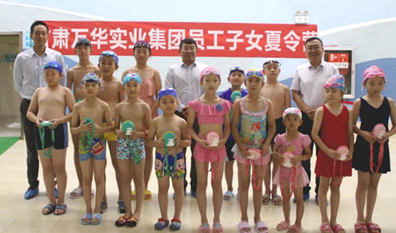 “每年的夏天,萬華集團都會為員工的孩子們準(zhǔn)備一場生動活潑的夏令營。游泳是一項生存技能,也是一項有益身心健康的體育運動。希望通過夏令營,小朋友們能學(xué)好游泳技能,養(yǎng)成游泳的良好習(xí)慣,在未來的成長中,把鍛煉身體、堅守健康作為生活中一件重要的事情去堅持。愿健康、快樂成為未來每一位小朋友乘風(fēng)破浪、勇往直前的力量源泉!迸P旅癜l(fā)表開營儀式致辭并宣布開營。隨后,牛新民為參加夏令營的小朋友們贈送了精美禮物。