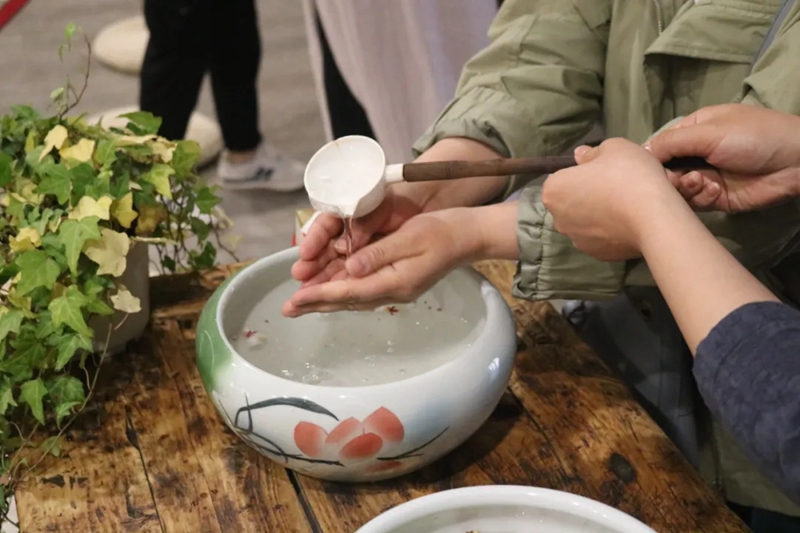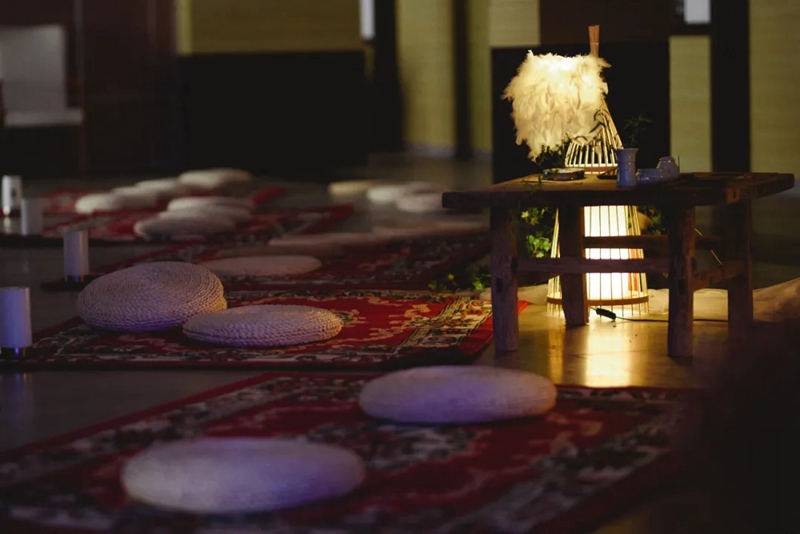 用花草、紗幔、燈光元素點(diǎn)綴的議堂里散發(fā)著回歸自然的風(fēng)情。與會(huì)嘉賓們一一凈手后靜心禪坐,靜待這場(chǎng)與雅樂的美麗邂逅。