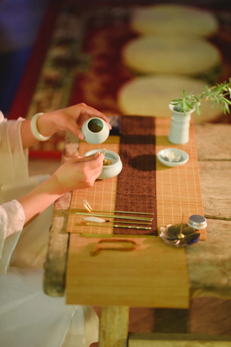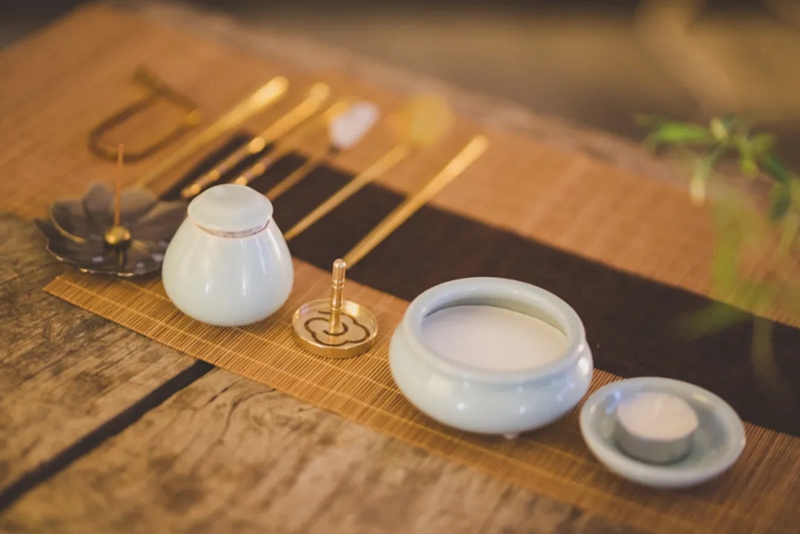 放下一切,遠(yuǎn)離喧囂,不問雜事。爐中升起的裊裊細(xì)香,與懸壺高沖激起的茶煙相結(jié)合。瞬間,月牙泉小鎮(zhèn)議堂內(nèi)盈溢著沉香與茶香,沁人心脾……